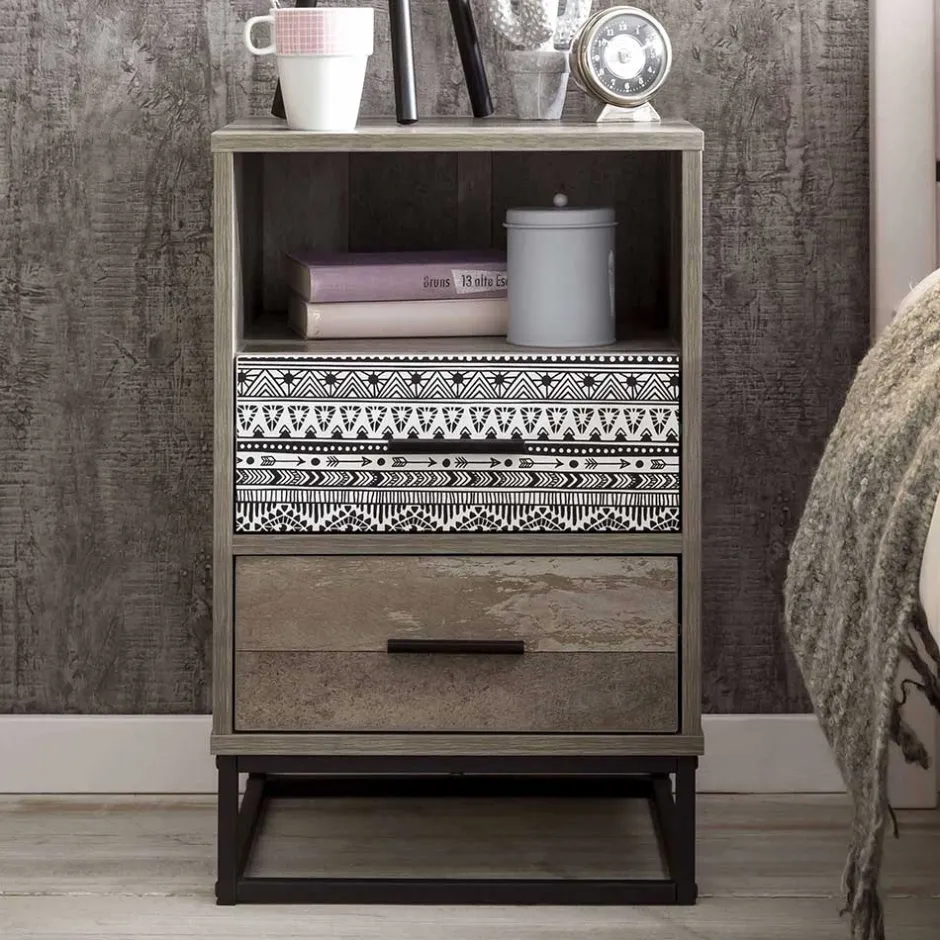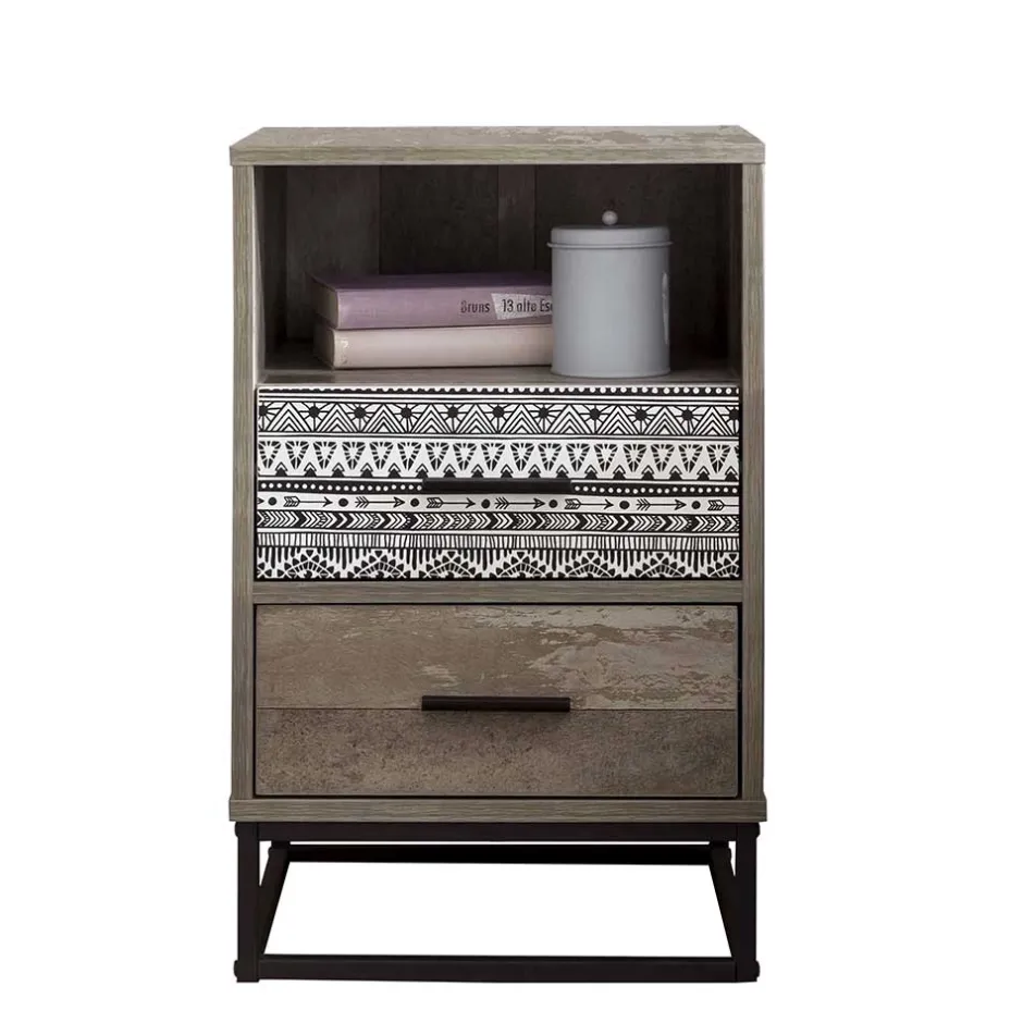 - Beeindruckende Nachtkommode in Holz Grey Wash und mehrfarbig