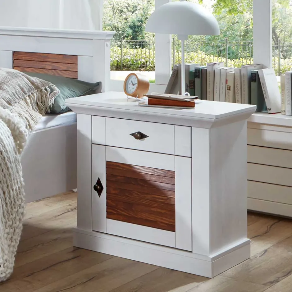 - Schicke Nachtkommode in Weiß und Kiefer Bernsteinfarben