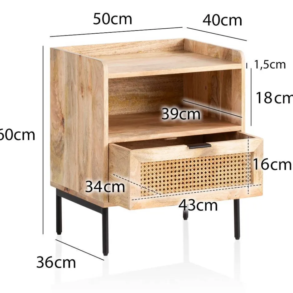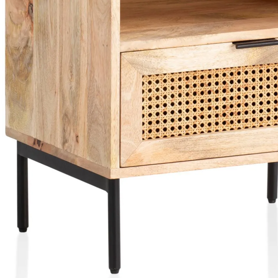 - Aus Mangobaum Massivholz, Rattan, MDF und Metall hergestellt