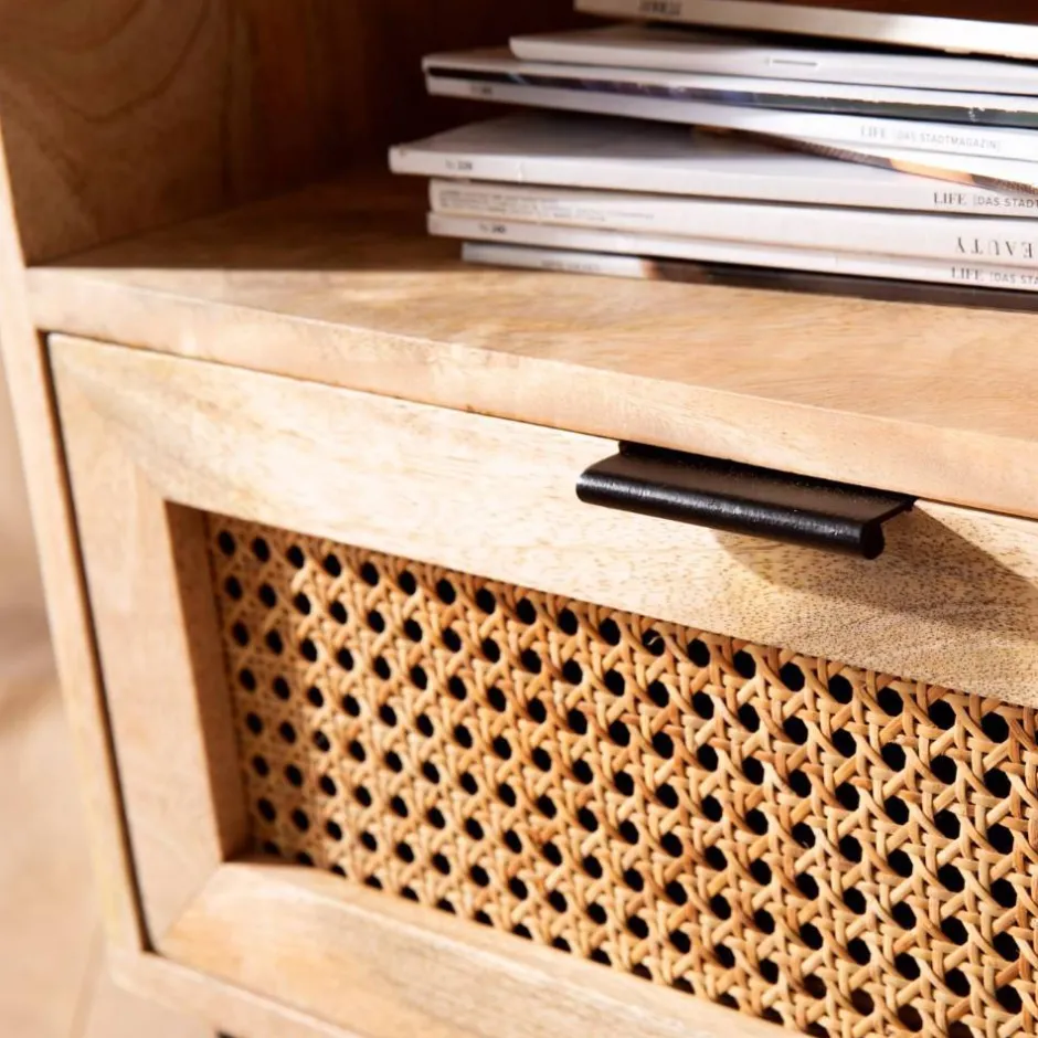- Eine Schublade mit Front aus MDF und Rattan, bei Bedarf komplett herausnehmbar