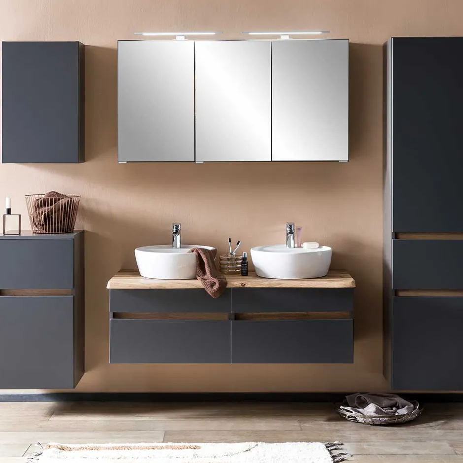 - Dezenter Bad Hängeschrank in Dunkelgrau