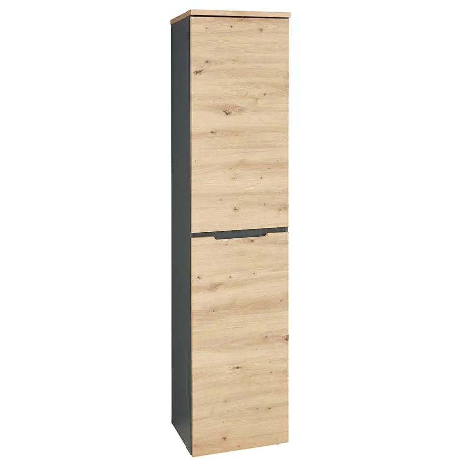 - Schmaler Aktenschrank in Wildeichefarben und Dunkelgrau
