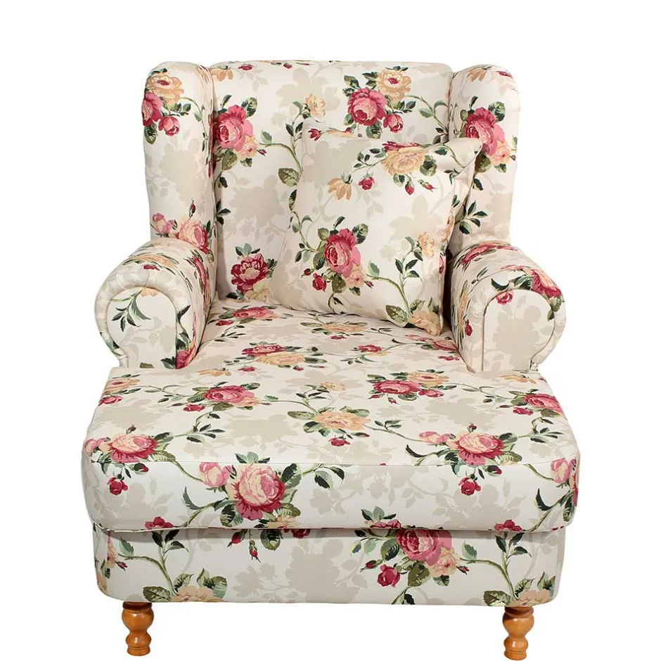 - Romantischer Big Sessel in Cremeweiß-Bunt und Buchefarben