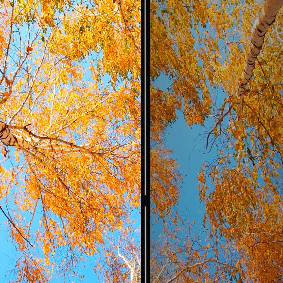 - Das Motiv zeigt Birken im Herbst aus der Froschperspektive