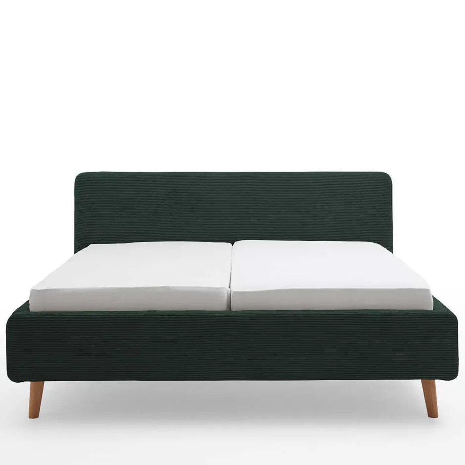 - Angesagtes Polsterbett in Dunkelgrün und Eichefarben