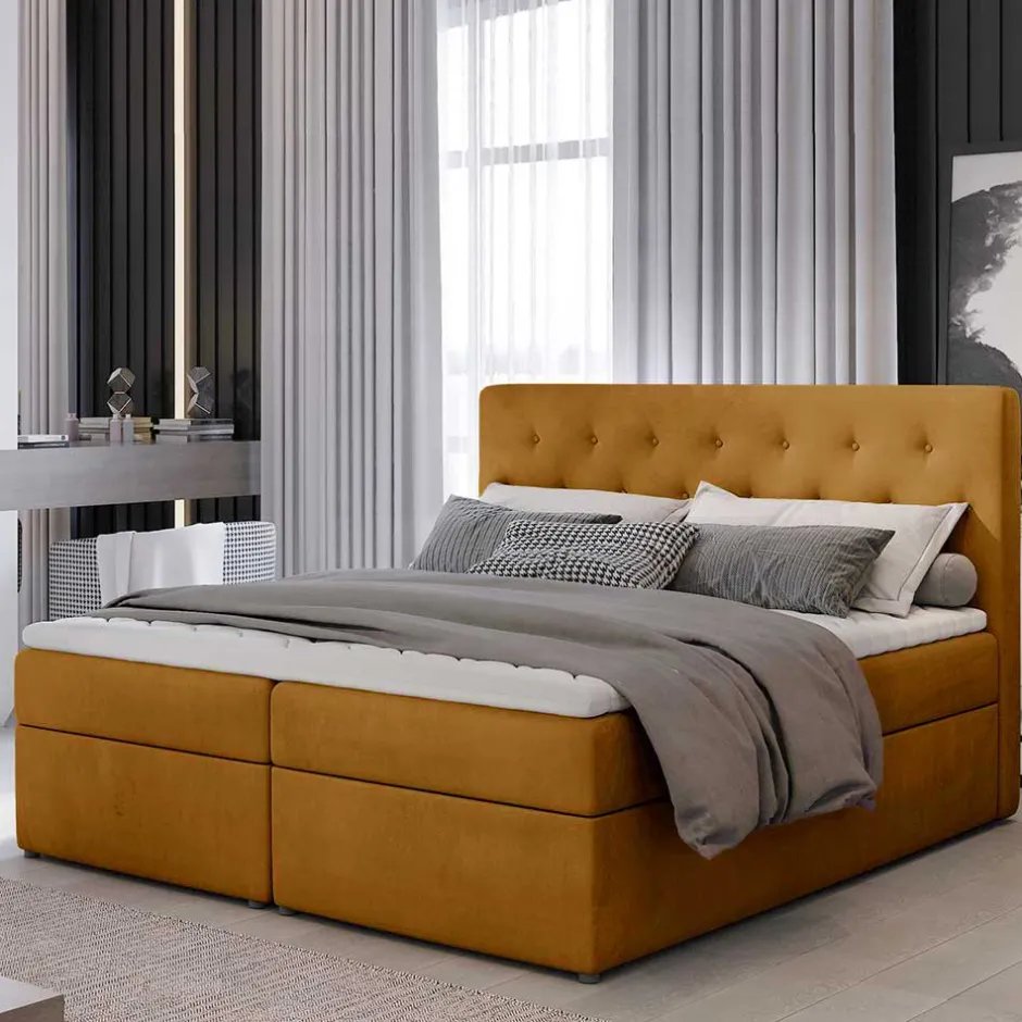- Zwei geräumige Bettkästen, die jeweils in zwei Teile unterteilt sind, Öffnung mit Lift Funktion an den Längsseiten