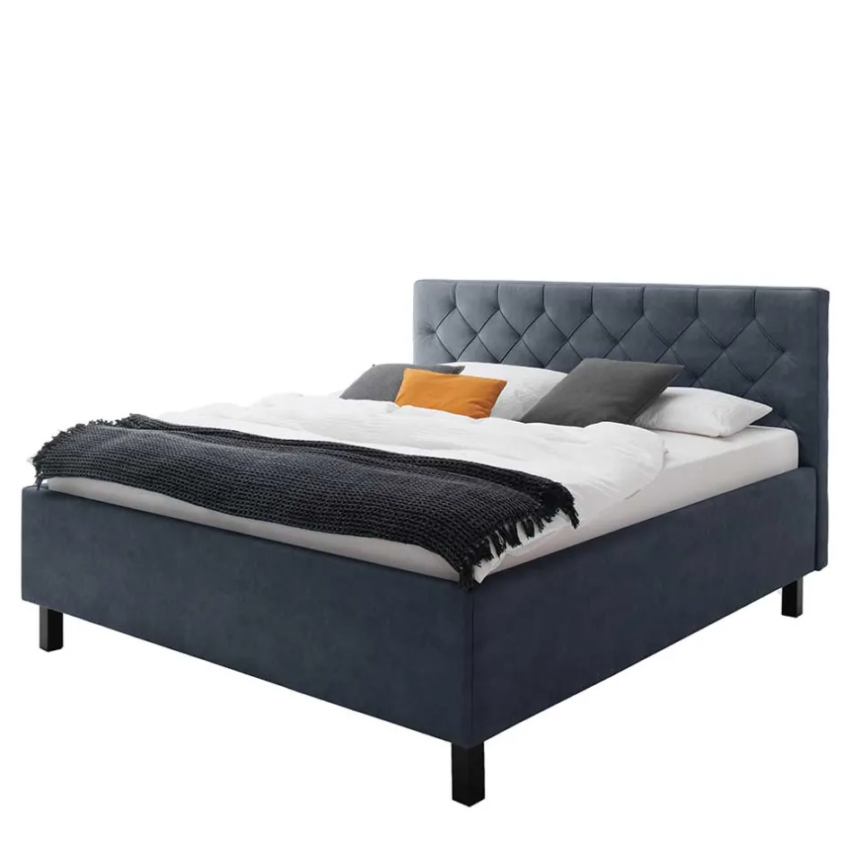 - Hochwertiges Polsterbett in Blaugrau und Schwarz