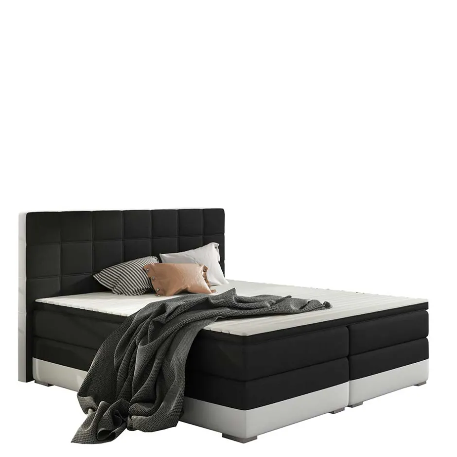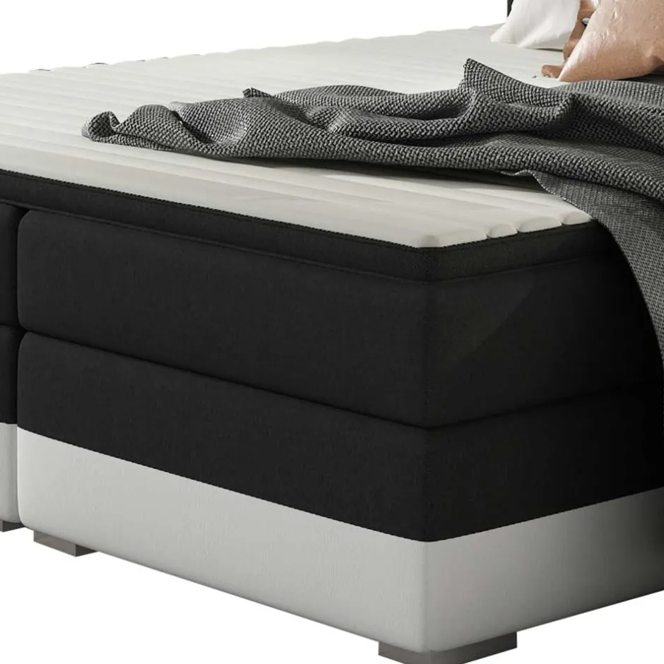 - Kontraststarkes Boxbett in Schwarzbrauin und Weiß