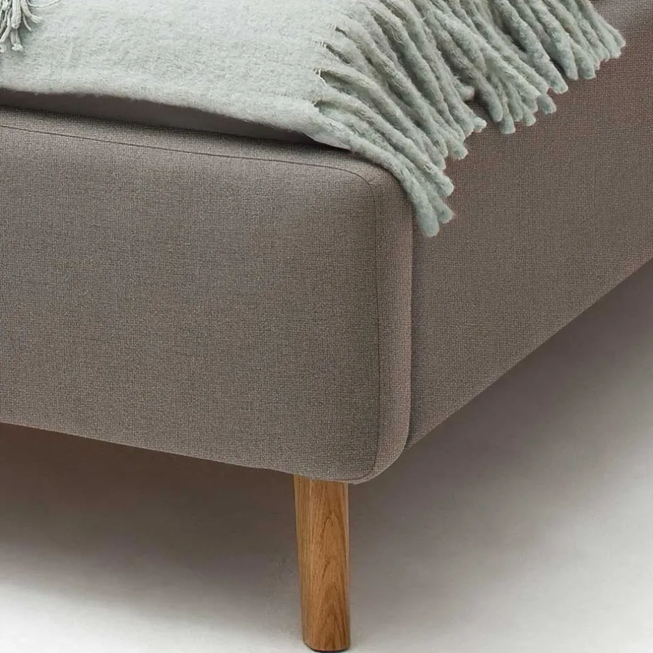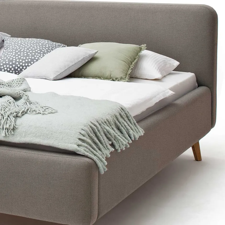 - Formschönes Polsterbett in Taupe und Eichefarben