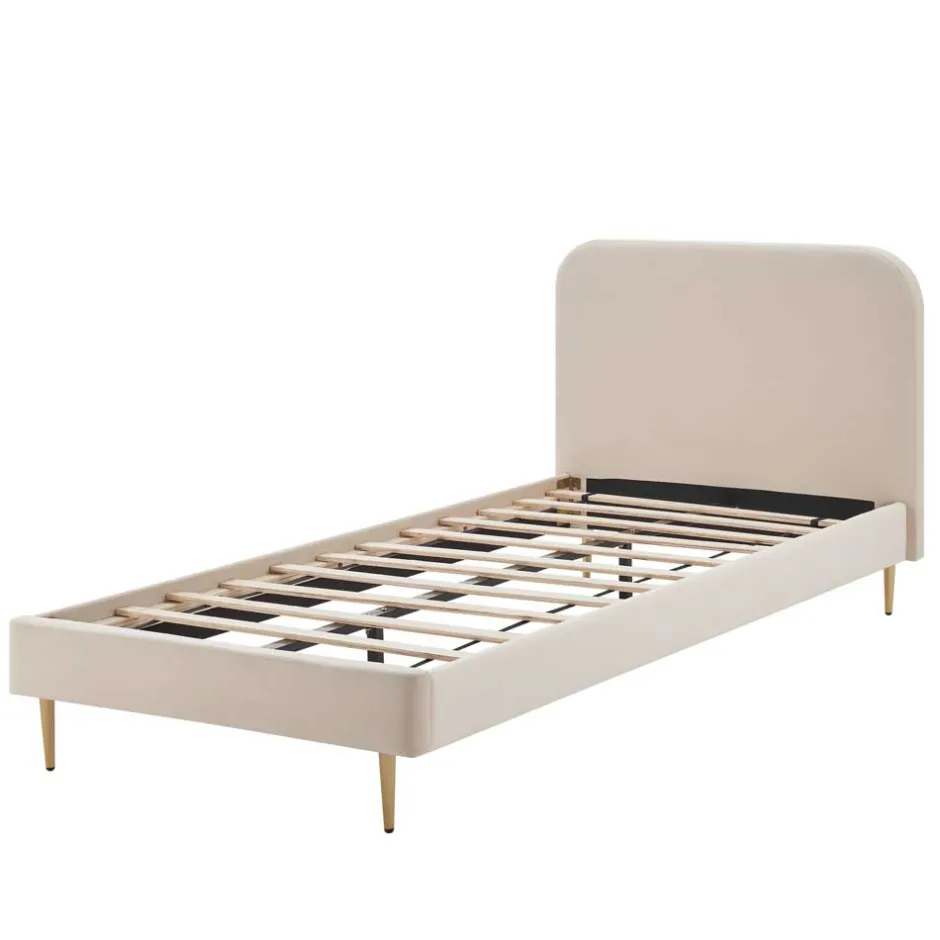 - Attraktives Polsterbett in Beige und Goldfarben