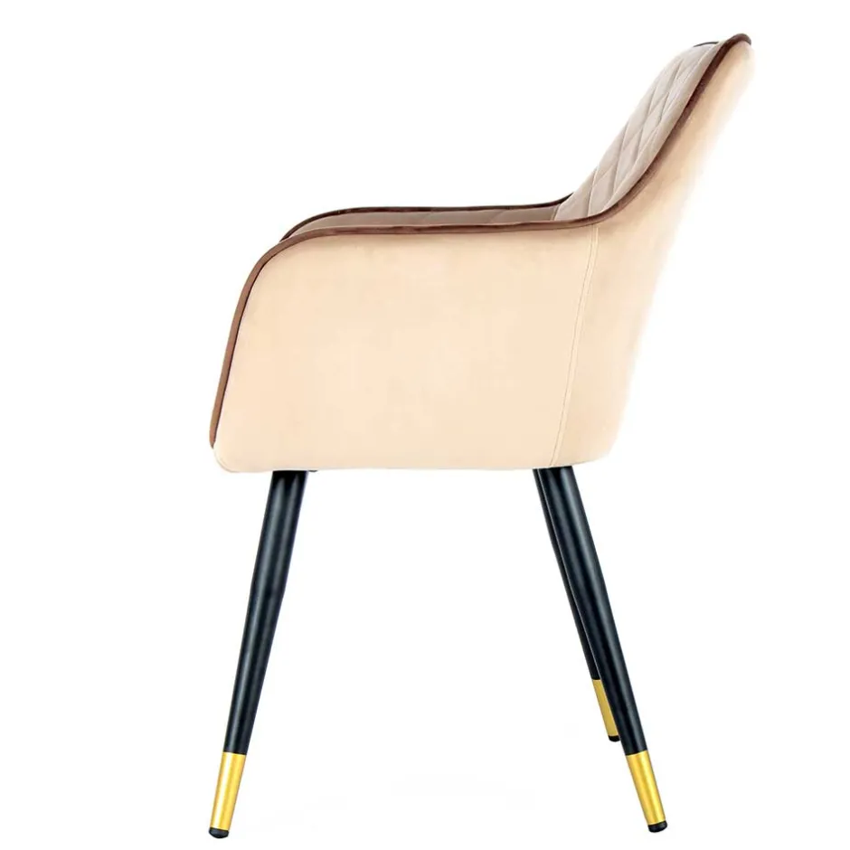- Eleganter Armlehnstuhl in Beige, Schwarz und Goldfarben