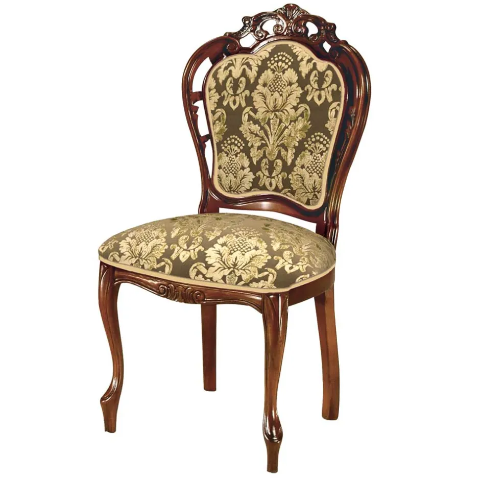 - Prachtvoller Polsterstuhl in Beige, Gold, und Nussbaumfarben
