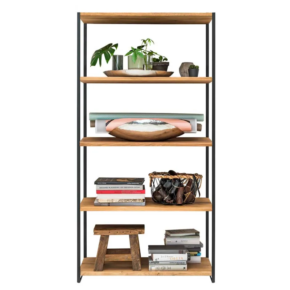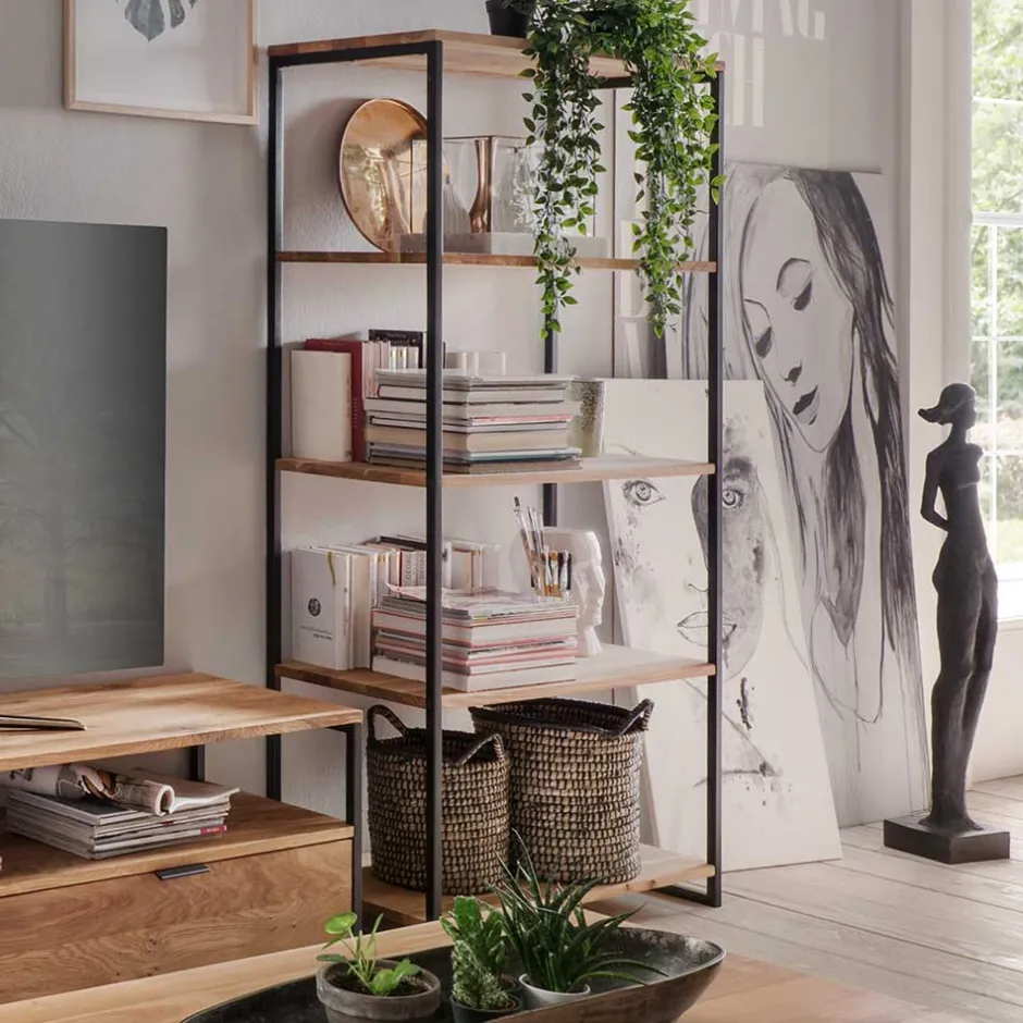 - Fünf Holzböden bieten viel Platz für Bücher oder Deko