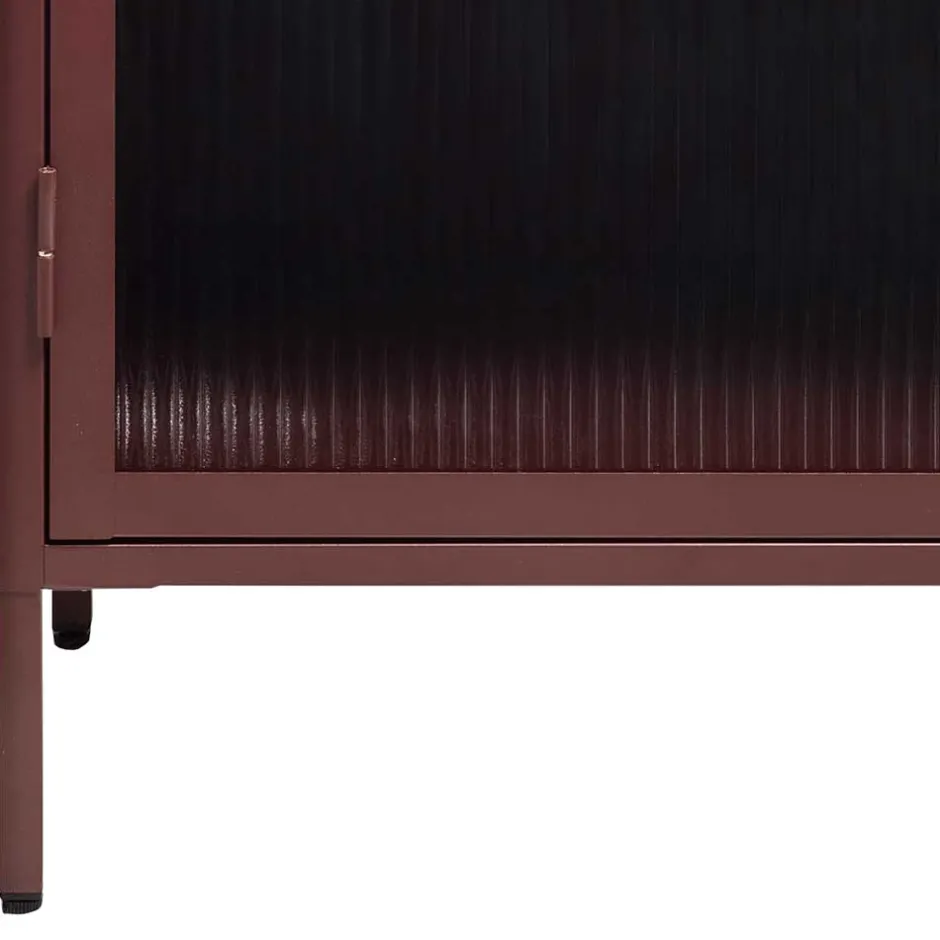 - Eine Tür aus geripptem Glas mit Metallrahmen