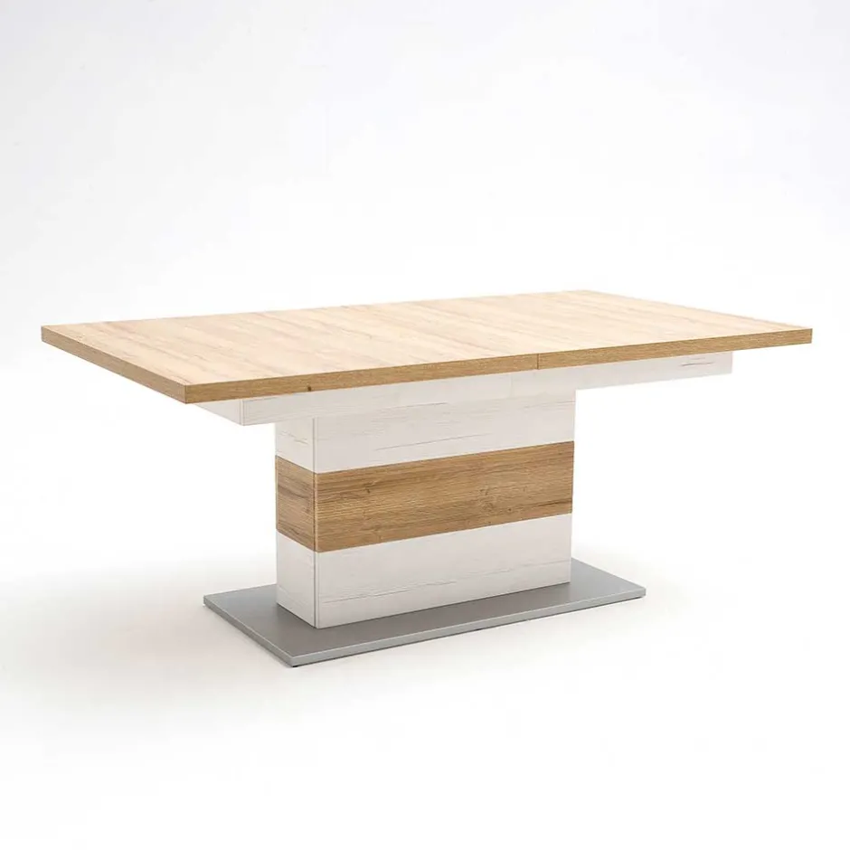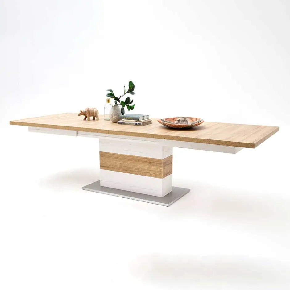 - Solider Esstisch in Pinie Weiß und Eichefarben