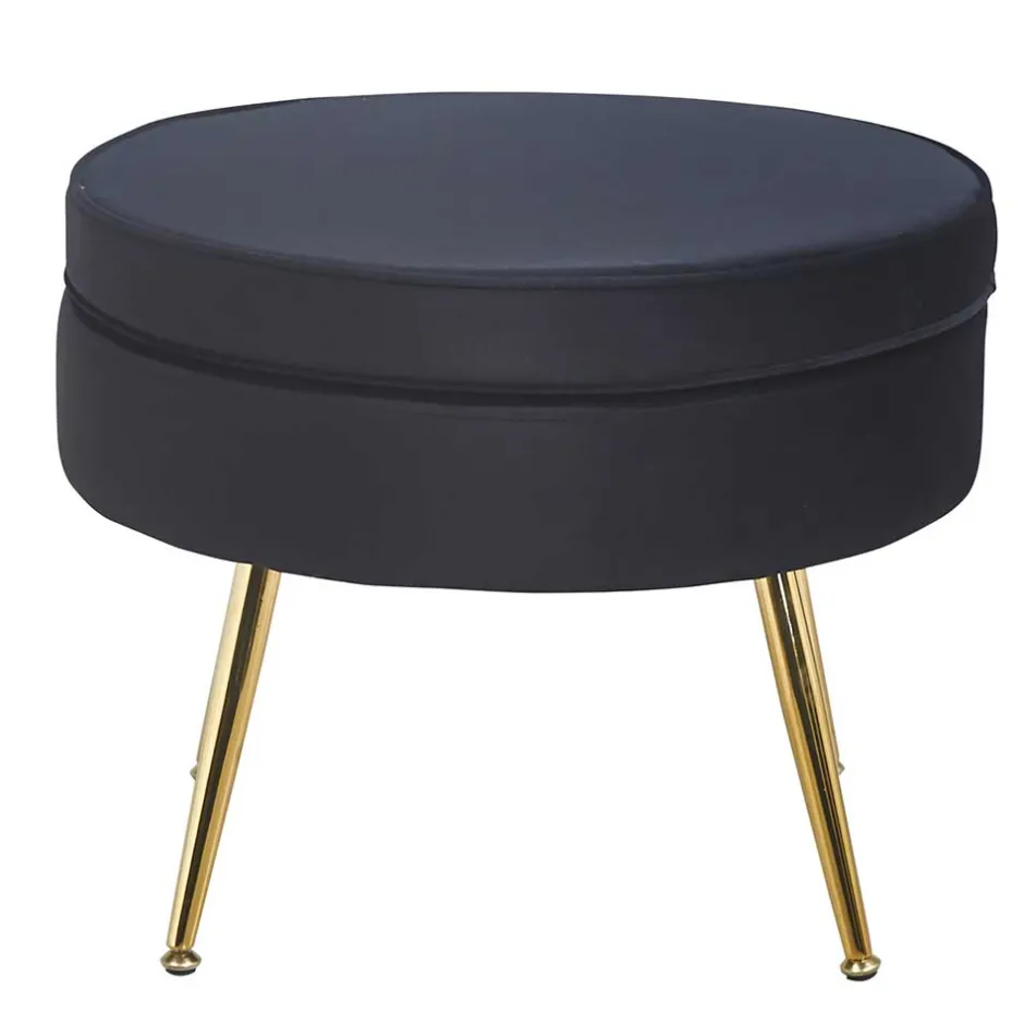 - Aparter Polsterhocker in Schwarz und Goldfarben