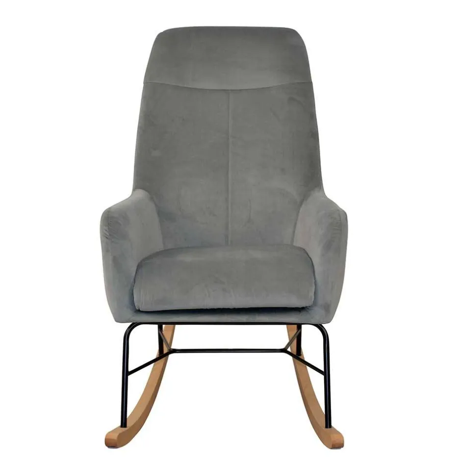 - Hochaktueller Schaukelsessel in Grau, Schwarz und Holz Naturfarben