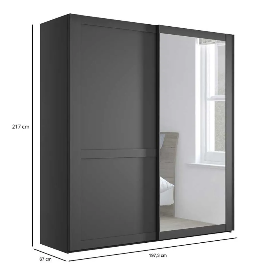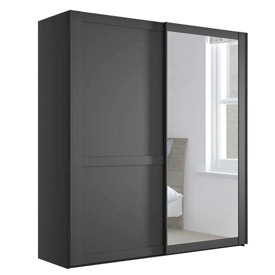 - Unempfindliche, folierte Oberflächen in Dunkelgrau, Innendekor in hellgrauer Holzoptik