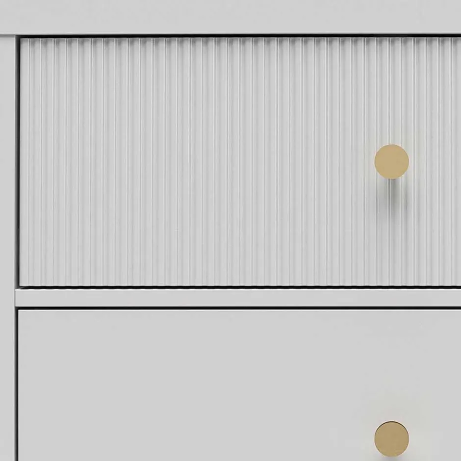 - Oberflächen melaminharzbeschichtet, obere Schubkastenfront mit dekorativer Rillenstruktur gestaltet