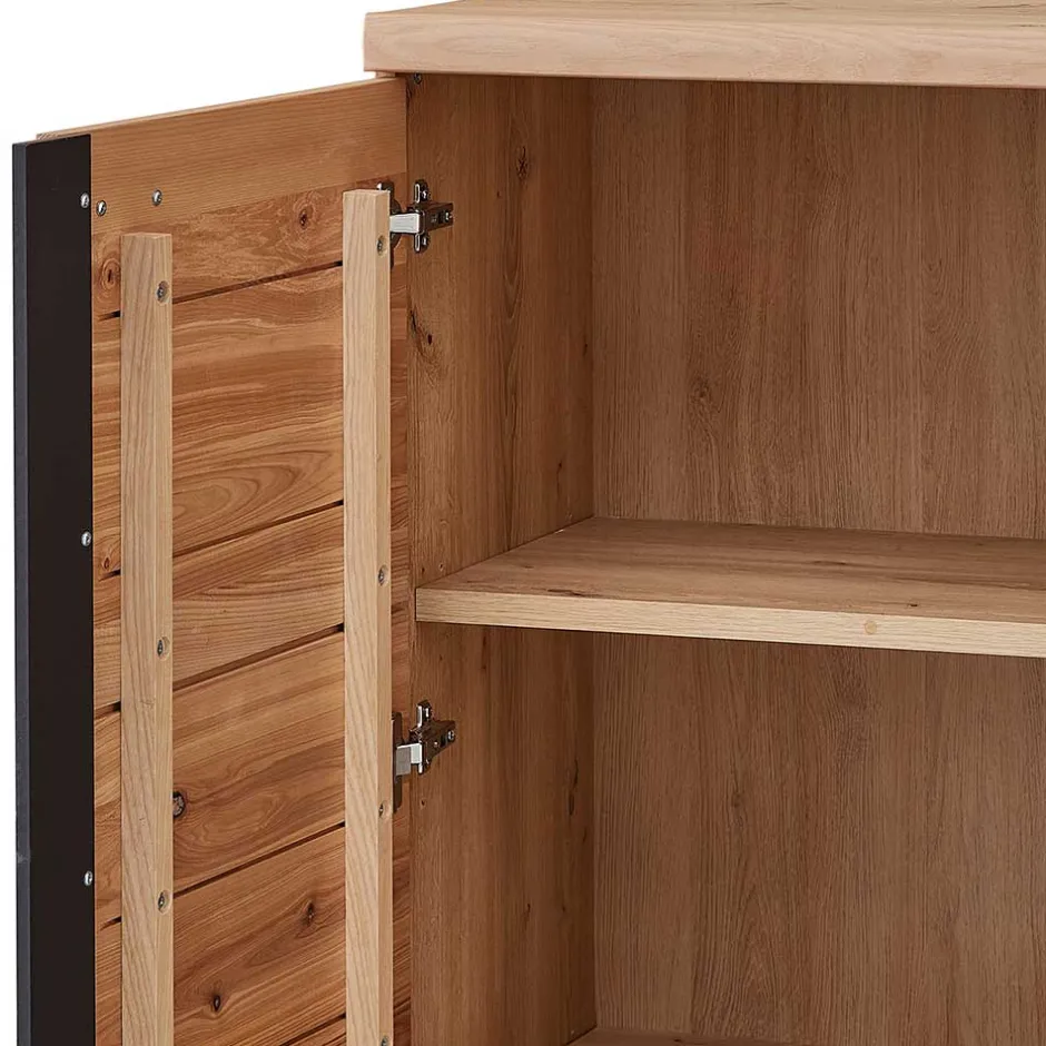 - Zeitlos und modern präsentiert sich der Aktenschrank in Eschefarben (Front) und Wildeichefarben (Korpus) sowie Schwarz