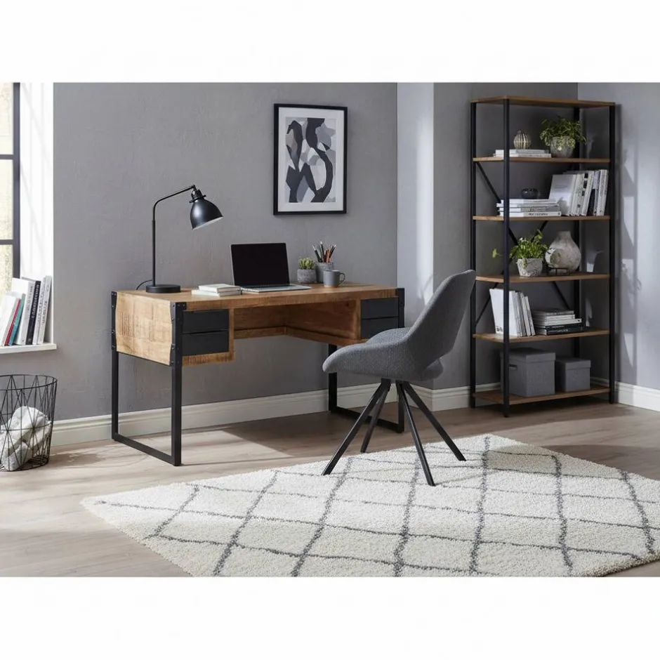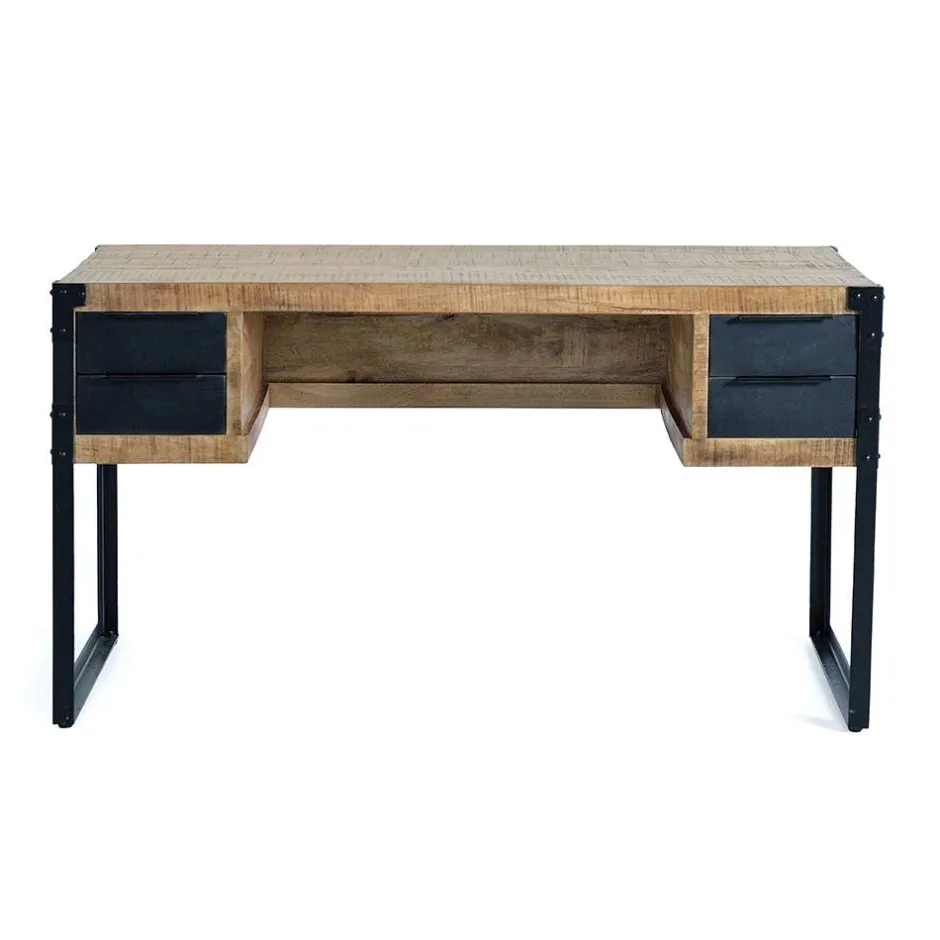 - Rustikaler Schreibtisch in Mangoholz Naturfarben und Schwarz