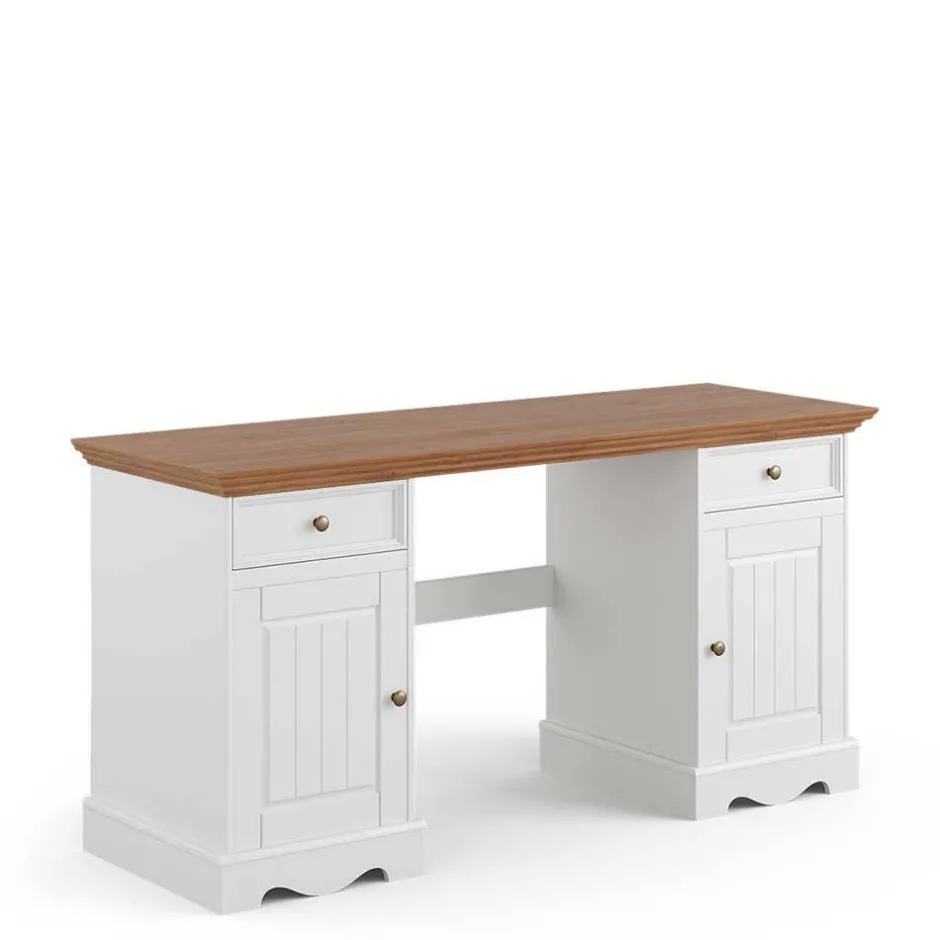 - Klasse Schreibtisch in Weiß und Eichefarben