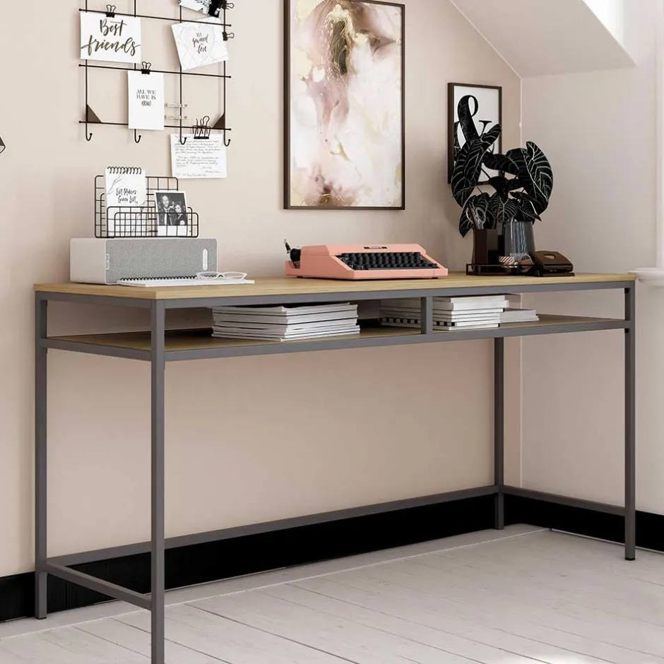 - Geschmackvoller Schreibtisch in Eichefarben und Dunkelgrau