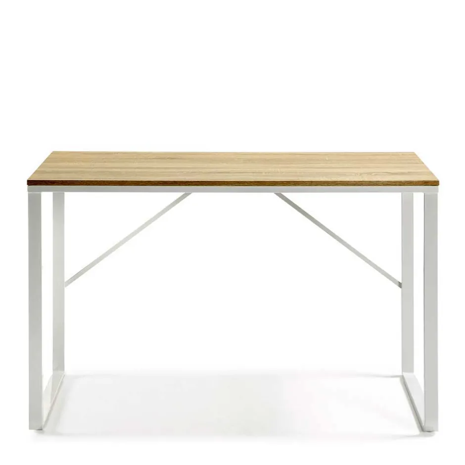 - Trendiger Schreibtisch in Weiß und Holz Naturfarben