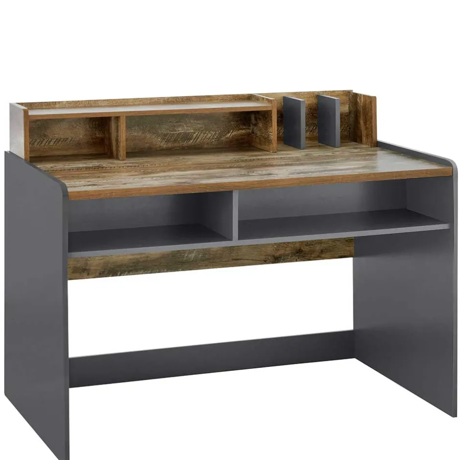 - Klasse Schreibtisch in Dunkelgrau und Holzoptik Eiche verwittert