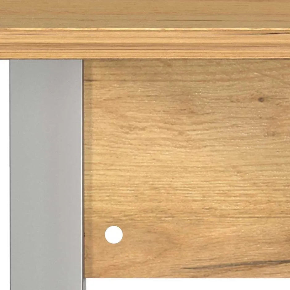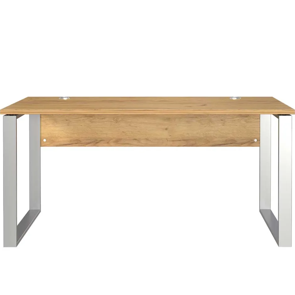 - Solider Schreibtisch in Wildeiche- und Silberfarben