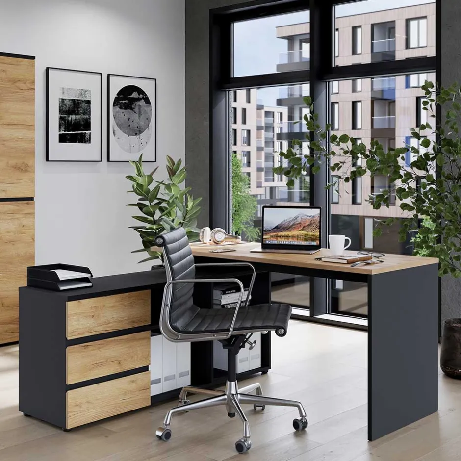 - Hervorragender Eckschreibtisch in Anthrazit und Wildeichefarben
