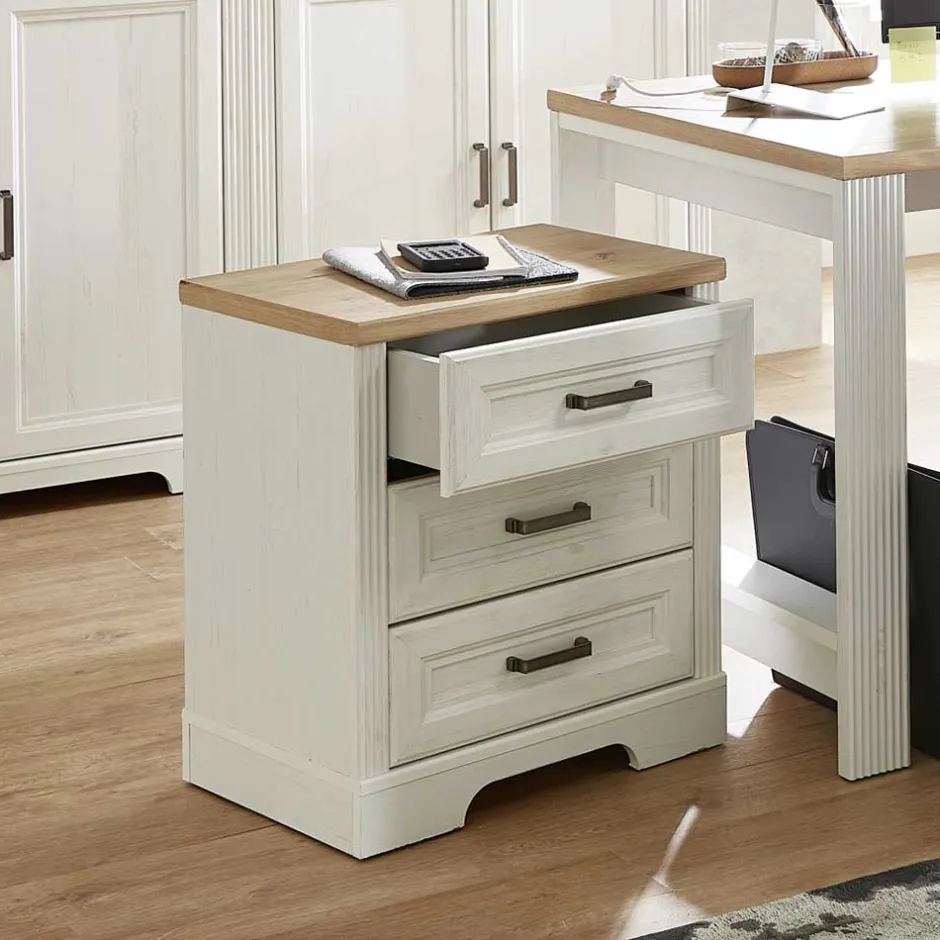- Attraktiver Rollcontainer in Pinie Weiß und Eichefarben