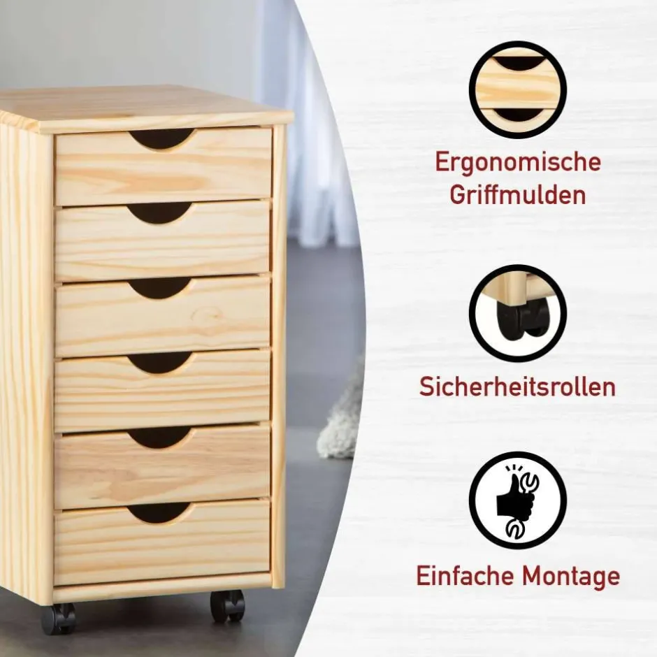 - Praktischer Rollcontainer in Kieferfarben