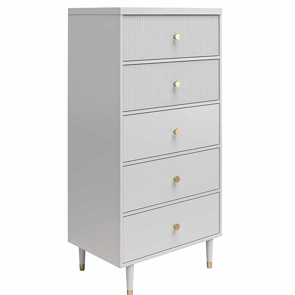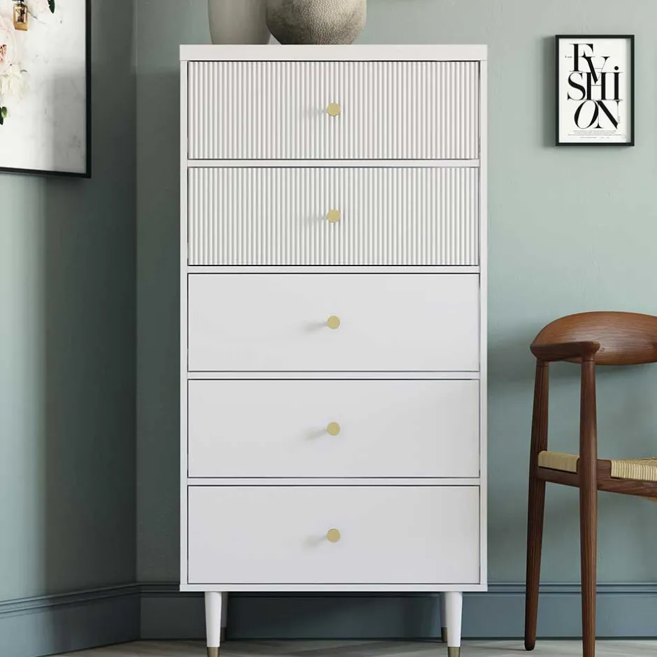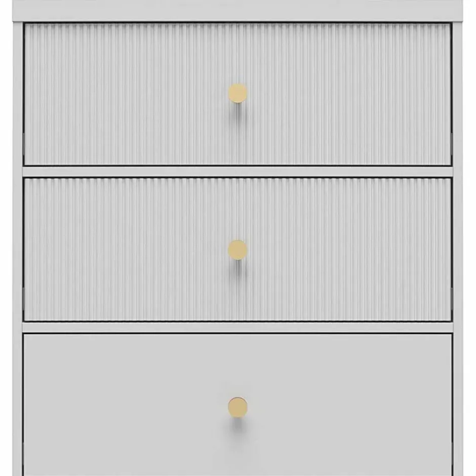 - Die beiden oberen Schubladen sind mit dekorativer Rillenstruktur gestaltet