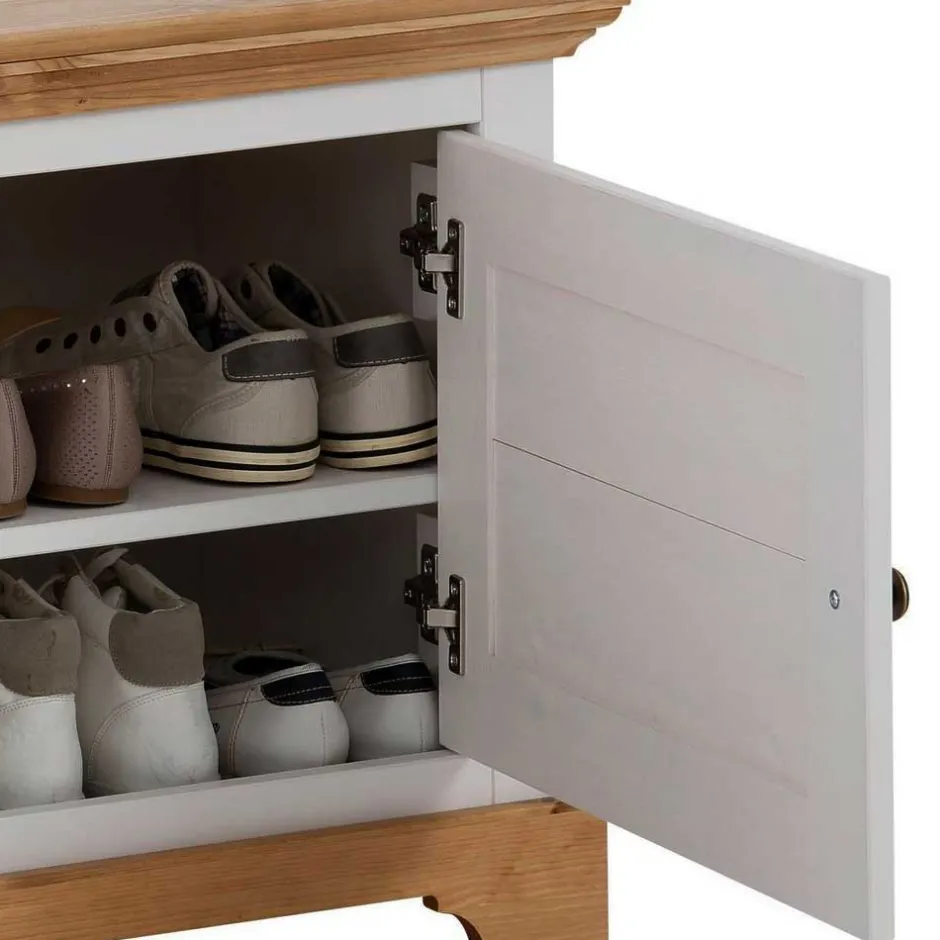 - Attraktive Schuhbank in Weiß und Kiefer Honigfarben
