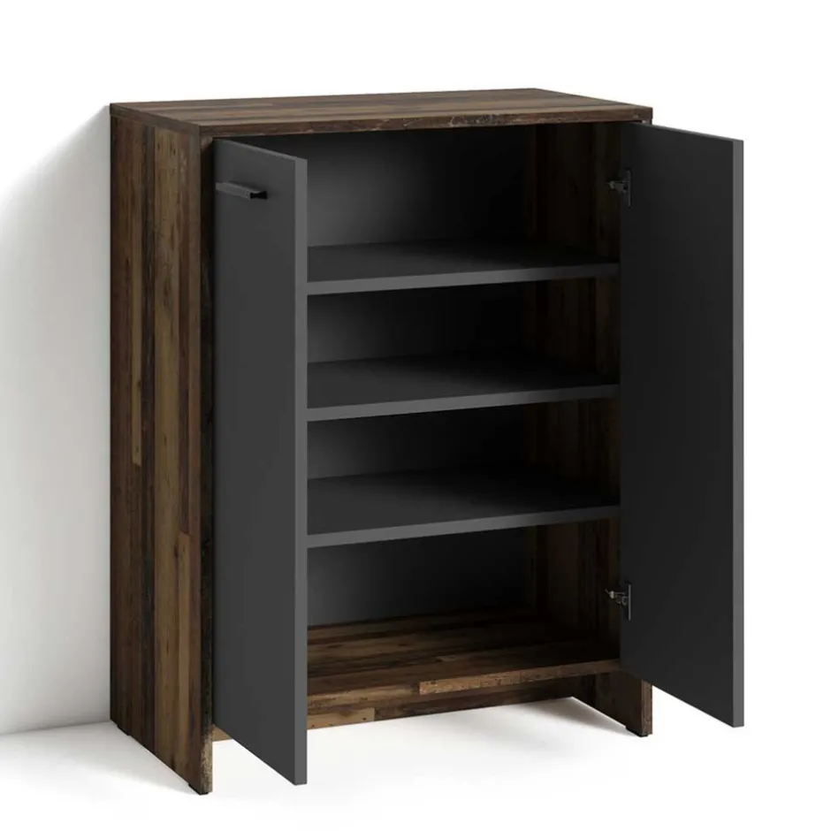 - Geschmackvoller Schuhschrank in Altholzoptik und Anthrazit