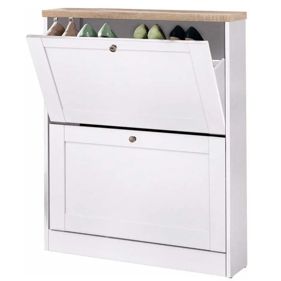 - Attraktiver Schuhschrank in Weiß und Sonoma Eiche