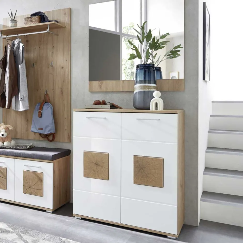 - Schicker Schuhschrank in Weiß und Wildeichefarben