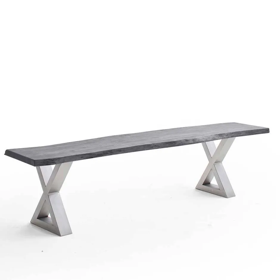 - Die Sitzbank in Akazie Grau und Edelstahlfarben ist ideal für den Industry und Loft Stil
