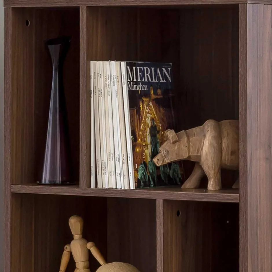 - Dekoratives Regal in Grau und Walnussfarben