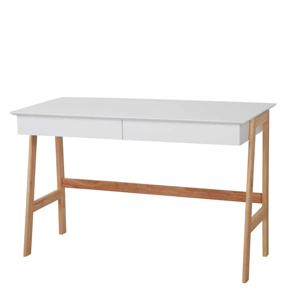 - Kompakter Schreibtisch in Weiß und Holz Naturfarben