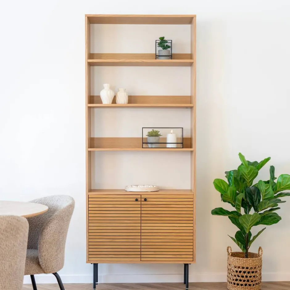 - Ansprechendes Regal in Eichefarben und Schwarz