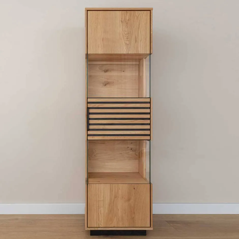 - Ansprechende Vitrine in Eichefarben und Schwarz