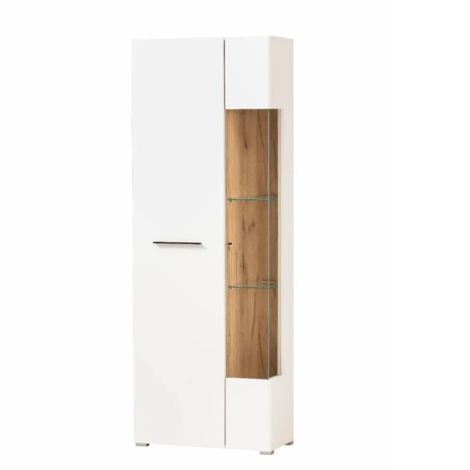 - Schicke Vitrine in Weiß, Weiß matt und Eichefarben