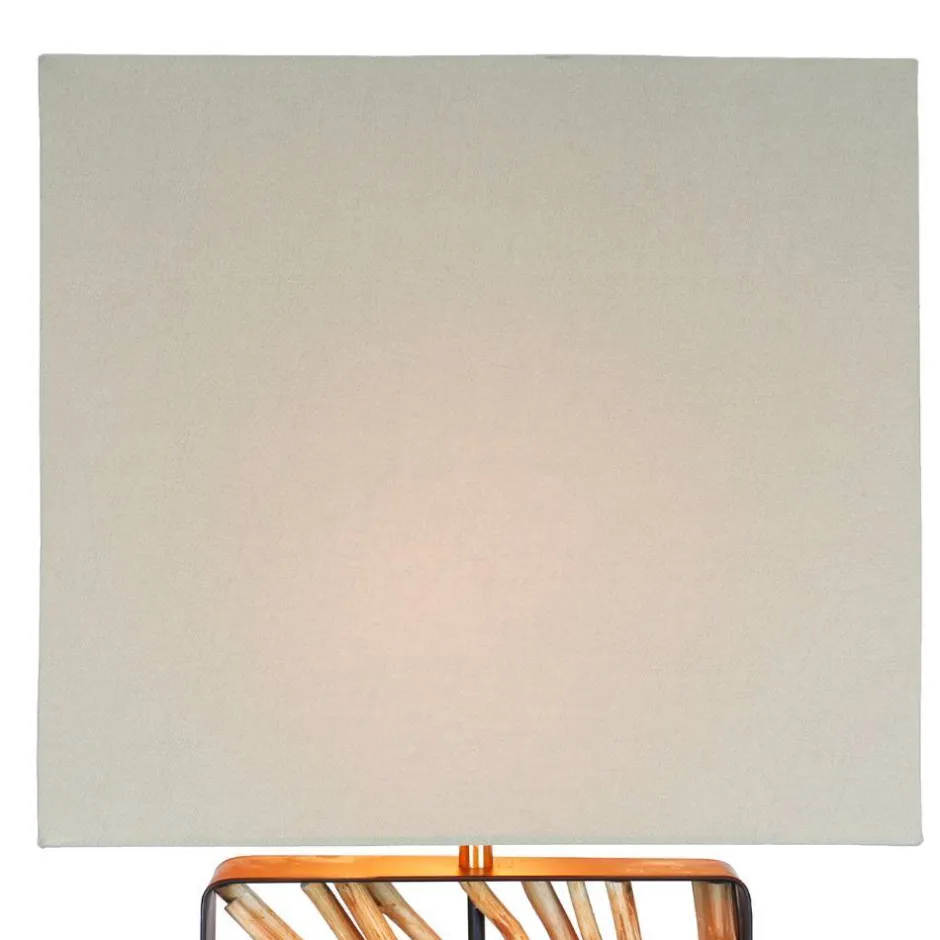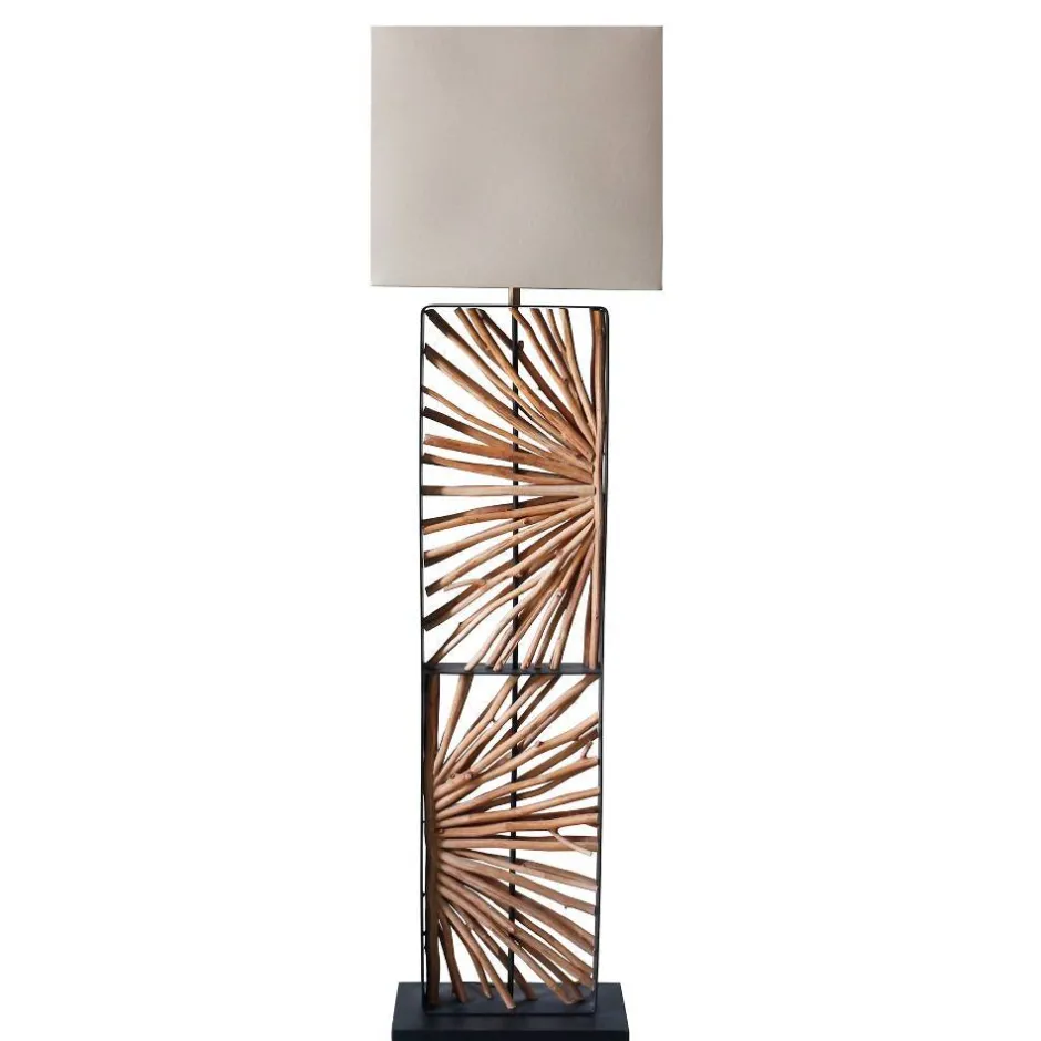 - Erstklassige Stehlampe in Beige, Schwarz und Holz Naturfarben