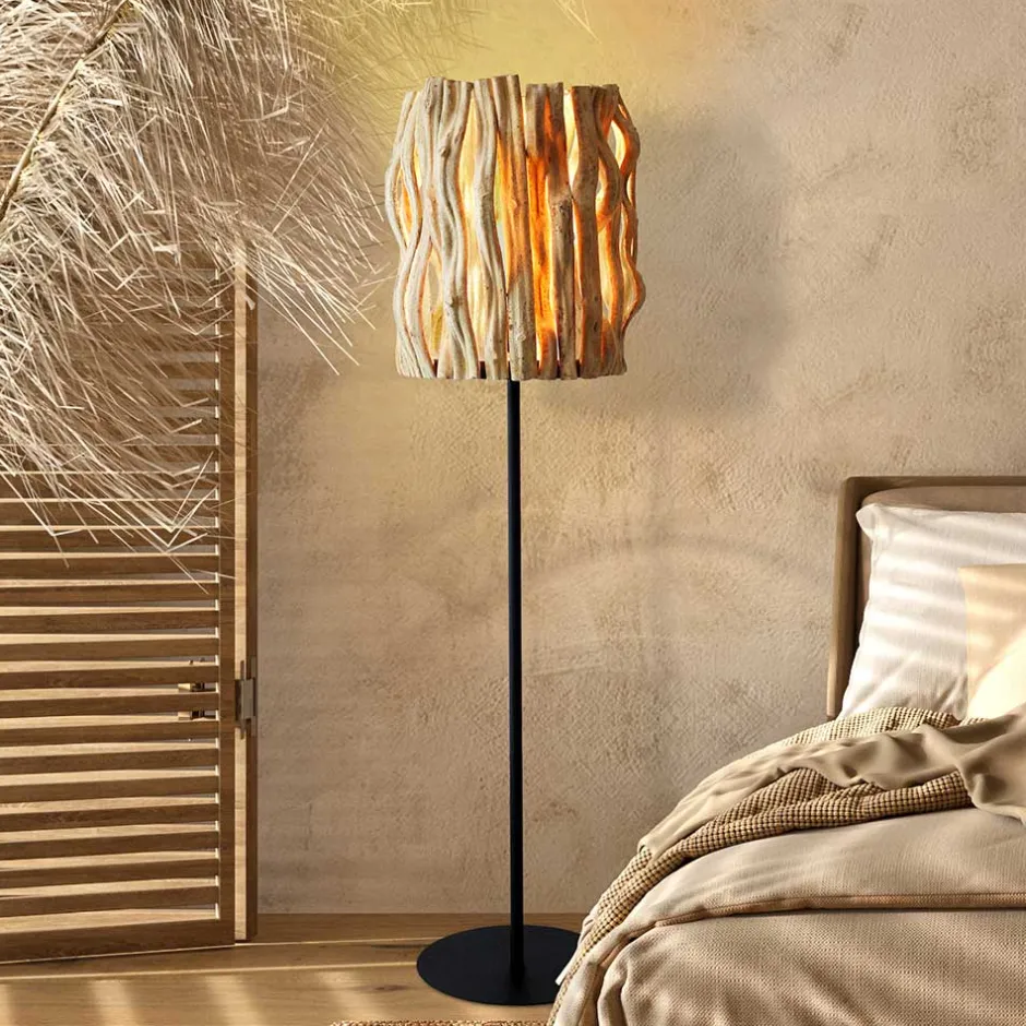 - Raffinierte Stehlampe in Holz Naturfarben und Schwarz