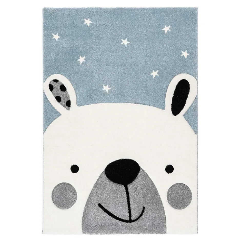 - Stilvoller Kinderteppich in Hellblau, Weiß, Grau und Schwarz
