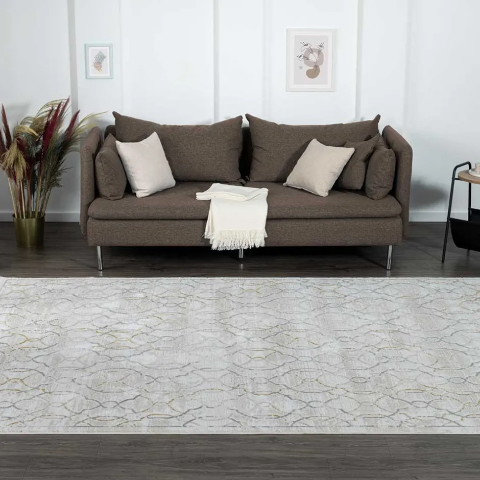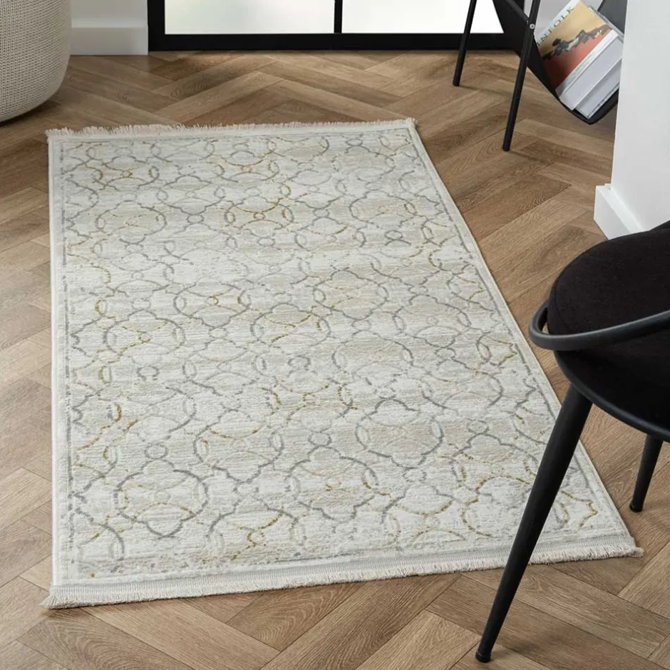 - Wohnlicher Teppich in Hellgrau und Cremefarben