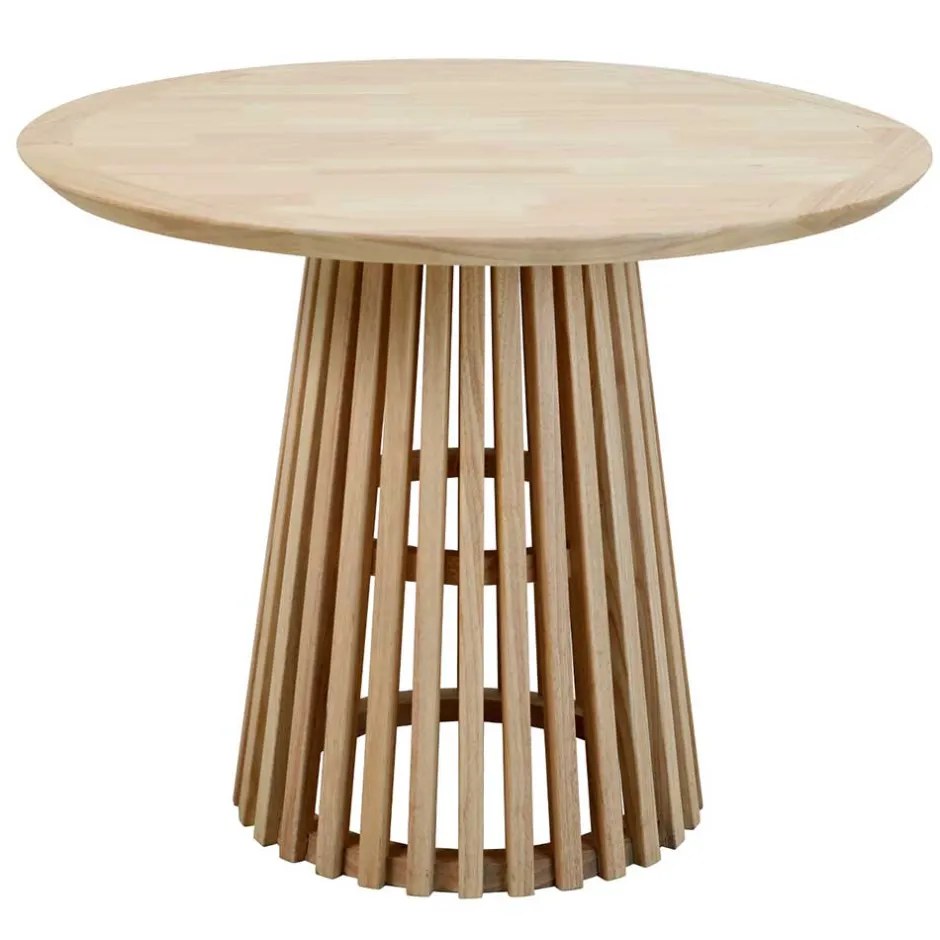 - Attraktives Säulengestell mit aufgesetzten Massivholzleisten