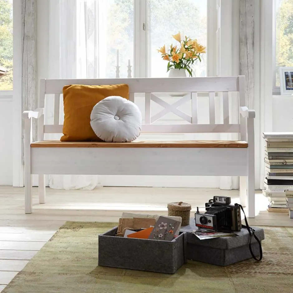 - Wunderschöne Bank in Weiß und Kiefer laugenfarbig